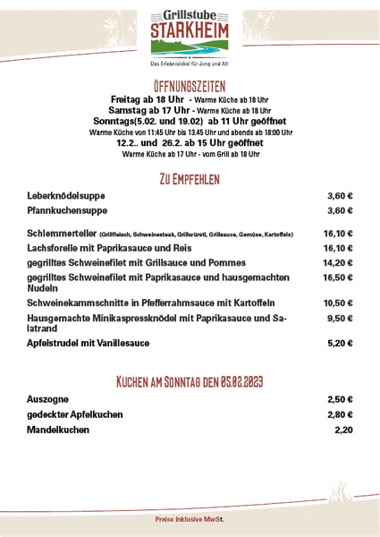 Sonntags(5.02. und 19.02) ab 11 Uhr geöffnet