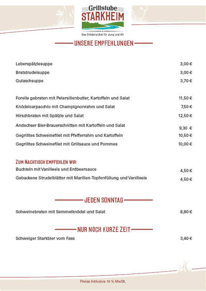 Hirschbraten mit Spätzle und Salat 12,50 €