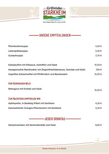 Gegrilltes Schweinefilet mit Pfefferrahm und Bandnudeln 10,50 €