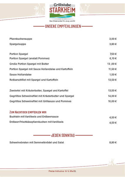 Portion Spargel (anstatt Pommes) 6,10 €