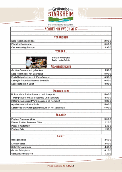 Fischfilet gebacken mit Kartoffelsalat 10,50 €