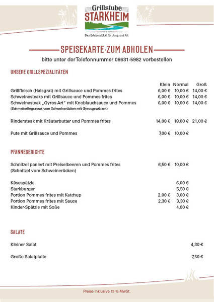 Am 9.4.2020 starten wir den Versuch "Außer Haus Verkauf" von warmen Speisen