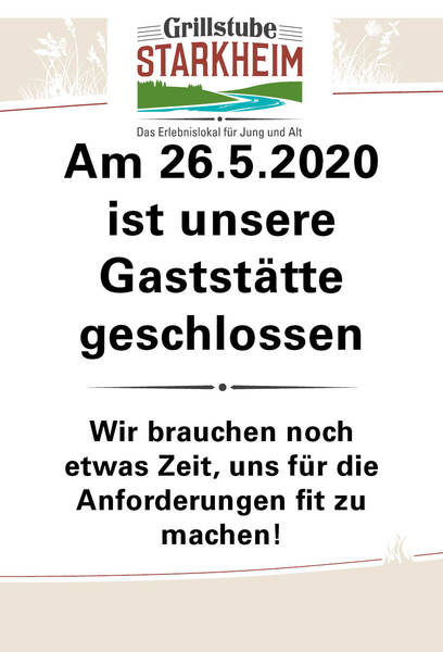 Am 26.5.2020 ist unsere Gaststätte geschlossen.