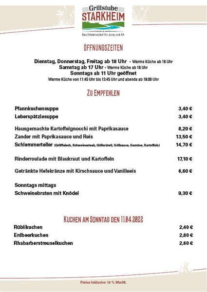 Speisekarte Öffnungszeiten KW15