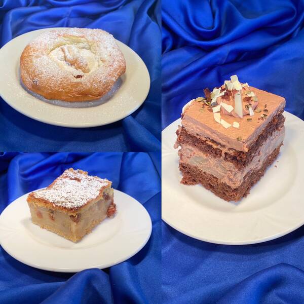 Kuchen am 30.1.22SO 30.1. von 12-16 UhrAuszogne gedeckter ApfelkuchenSchokoladenbirnensahne