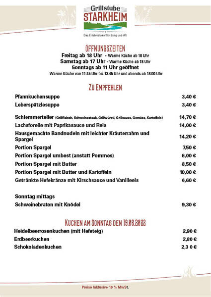 Warme Küche von 11:45 Uhr bis 13.45 Uhr und abends ab 18:00 Uhr