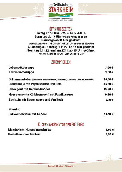 Allerheiligen Dienstag 1.11.22 ab 17 Uhr geöffnet