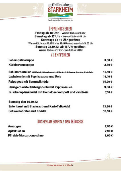 Sonntag 23.10.22 ab 15 Uhr geöffnet