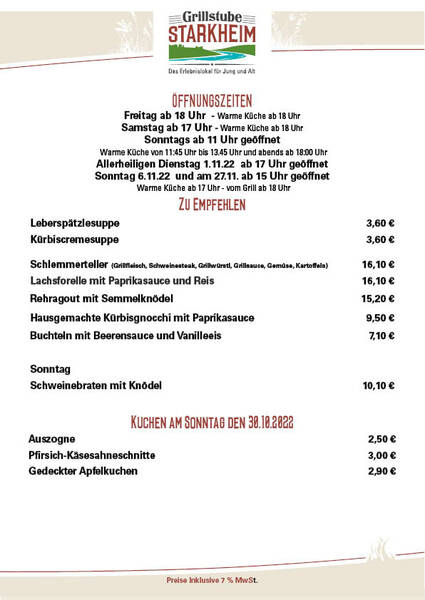 Allerheiligen Dienstag 1.11.22 ab 17 Uhr geöffnet