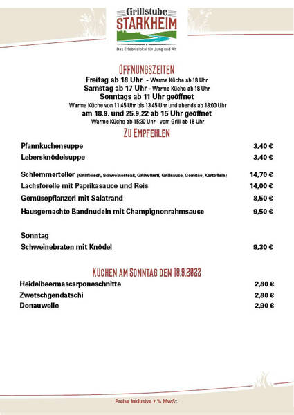 Warme Küche ab 15:30 Uhr - vom Grill ab 18 Uhr