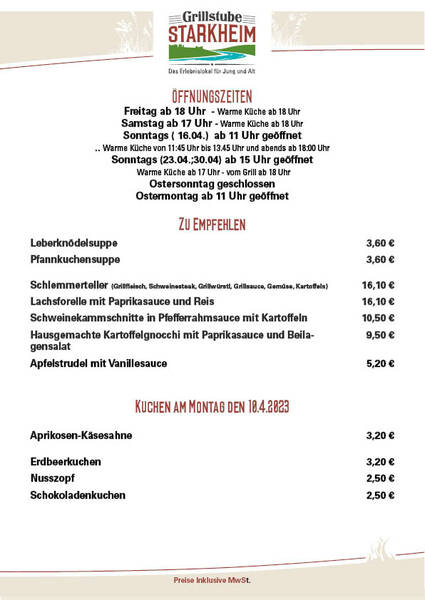 Warme Küche ab 17 Uhr - vom Grill ab 18 Uhr