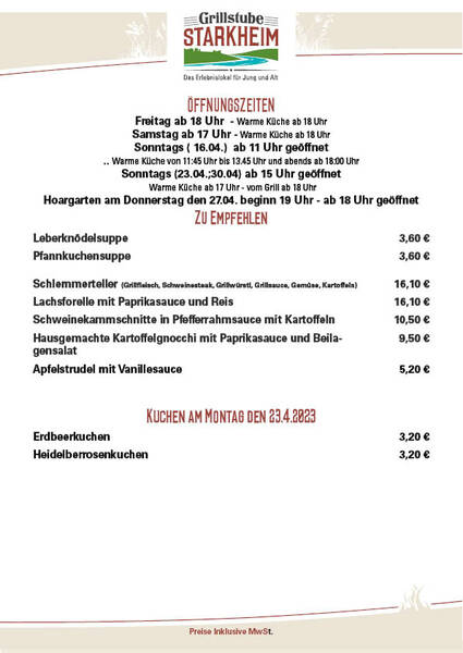 .. Warme Küche von 11:45 Uhr bis 13.45 Uhr und abends ab 18:00 Uhr