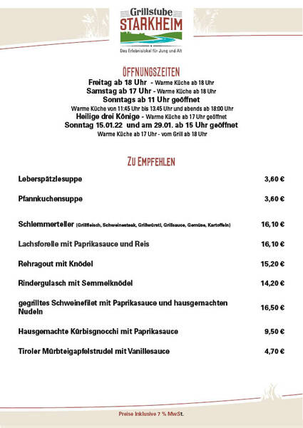 Heilige drei Könige - Warme Küche ab 17 Uhr geöffnet