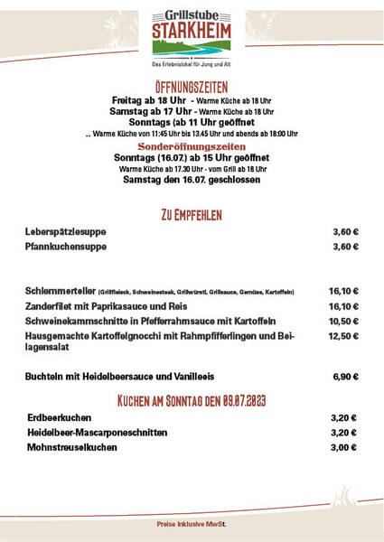 Warme Küche ab 17.30 Uhr - vom Grill ab 18 Uhr