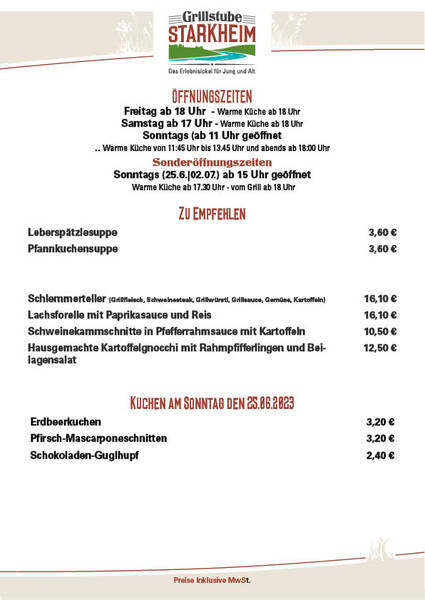 Warme Küche ab 17.30 Uhr - vom Grill ab 18 Uhr