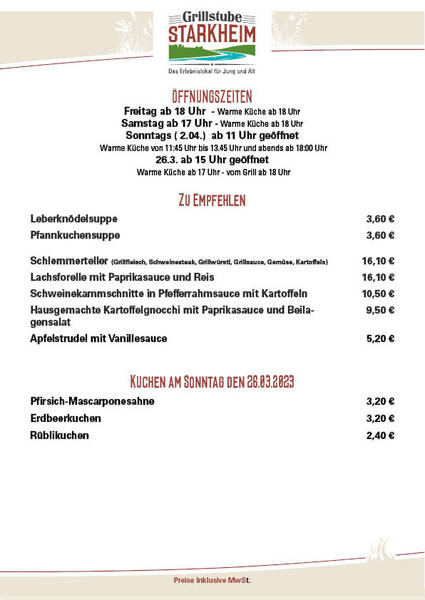 Warme Küche von 11:45 Uhr bis 13.45 Uhr und abends ab 18:00 Uhr