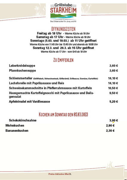 Warme Küche ab 17 Uhr - vom Grill ab 18 Uhr