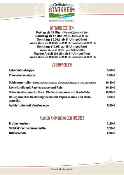 Warme Küche ab 17 Uhr - vom Grill ab 18 Uhr