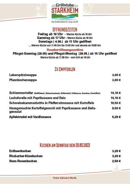 Warme Küche ab 17.30 Uhr - vom Grill ab 18 Uhr