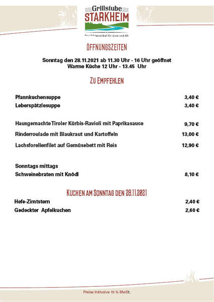 Rubrik: Speisekarte, Öffnungszeiten, Angebote