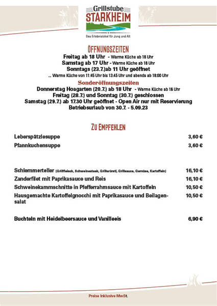 Samstag (29.7.) ab 17.30 Uhr geöffnet - Open Air nur mit Reservierung